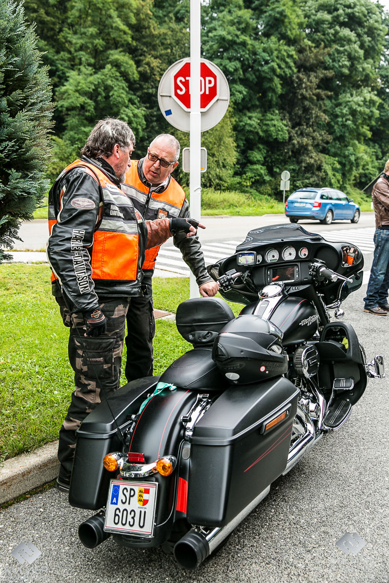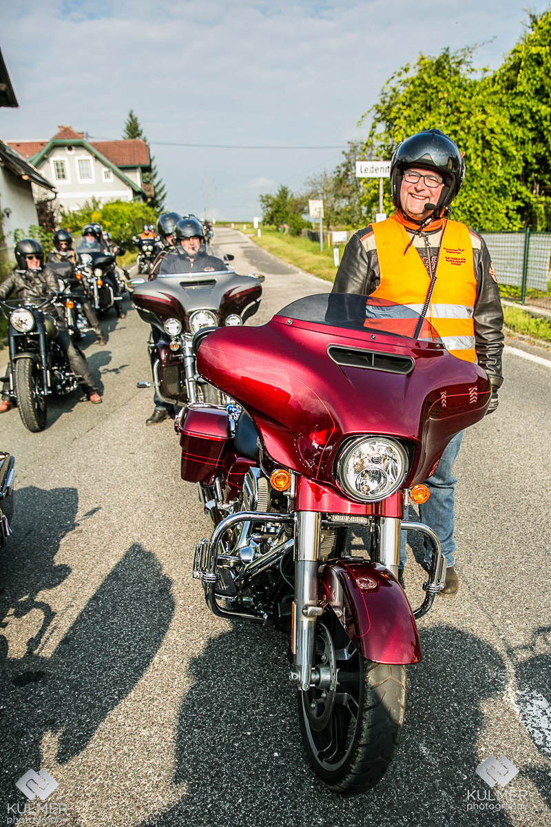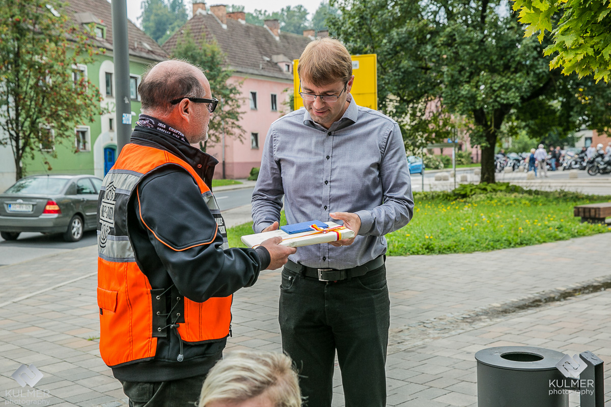 RC Manfred (Manni) führte mit Schlussman Walfgang und seinen Safeties die Tour durch das Rosental bis nach Bleiburg, dann über die Grenze nach Slowenien Prevalje, Slovenj Gradec bis nach Marburg. Dort empfing der Bürgermeister den Konvoi. Nach dem Essen ging es der Drau entlang zurück nach Lavamünd wo wir wieder nach Österreich zurückkehrten. Dann fuhren wir über die Autobahn bis nach Villach und anschließend nach Faak