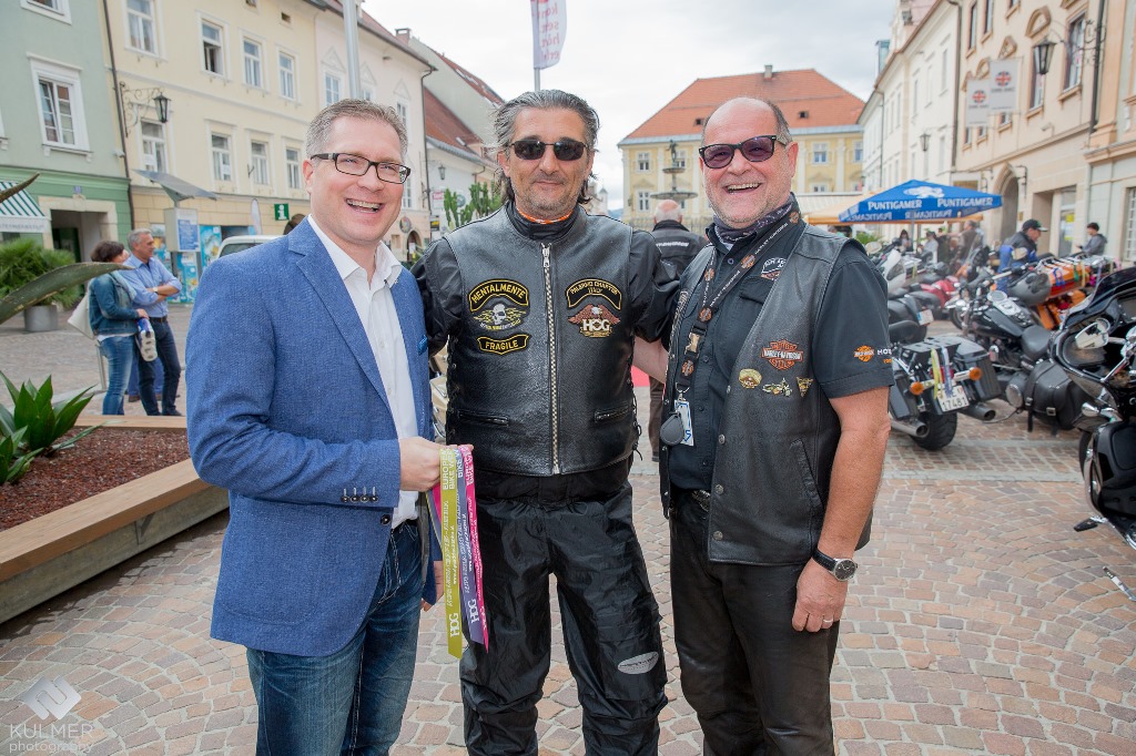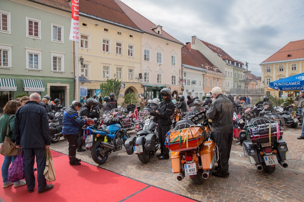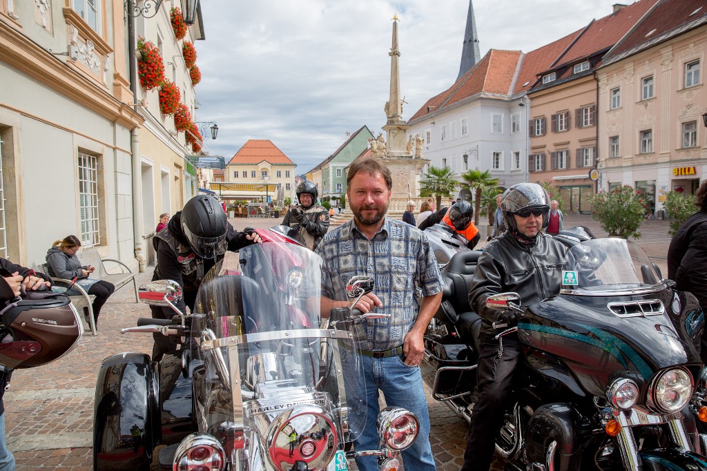 Trotz der schlechten Wettervorhersage von allen Apps startete Manfred seine Tour. Die ging von Faak nach St.Veit wo es einen Empfang des Vizebürgermeisters gab. Danach ging es vorbei am Längsee über das Klipitzthörl nach Wolfsberg, wor es vor dem Mittagessen noch einen Empfang des dortigen Bürgermeisters gab. Nach dem Essen fuhr der Konvoi über den Griffner nach Völkermarkt, beim Klopeinersee vorbei zum Wildensteiner Wasserfall zum letzten Kaffeestopp. Dann durch das Rosental zurück nach Faak.