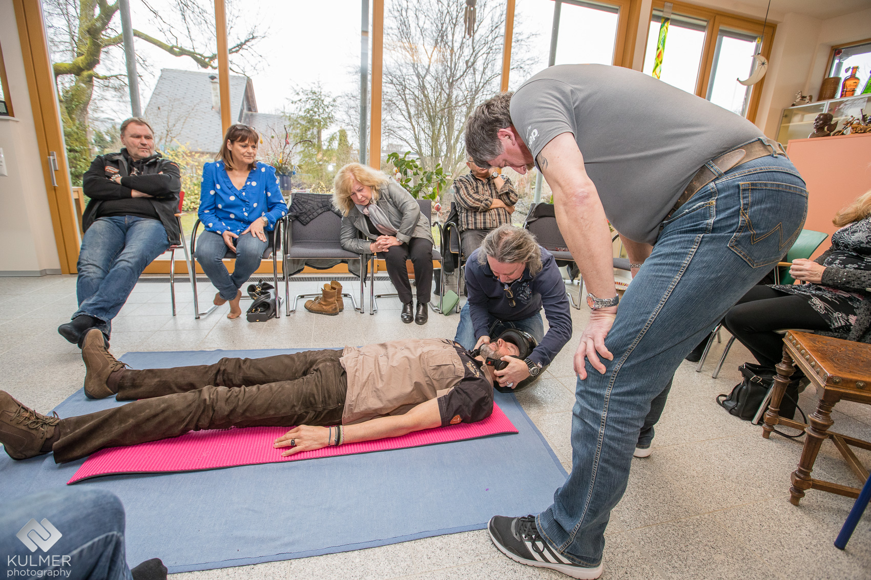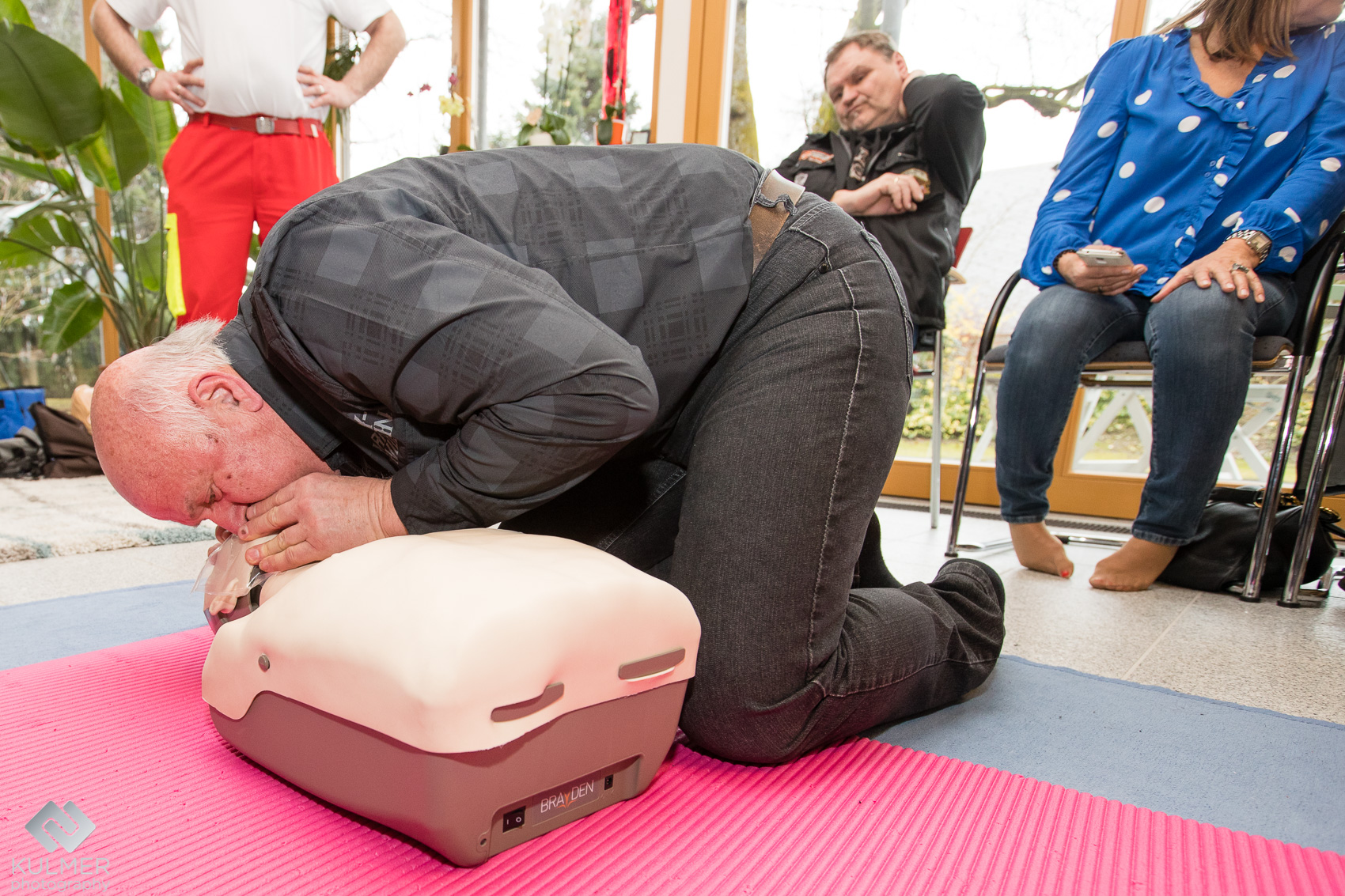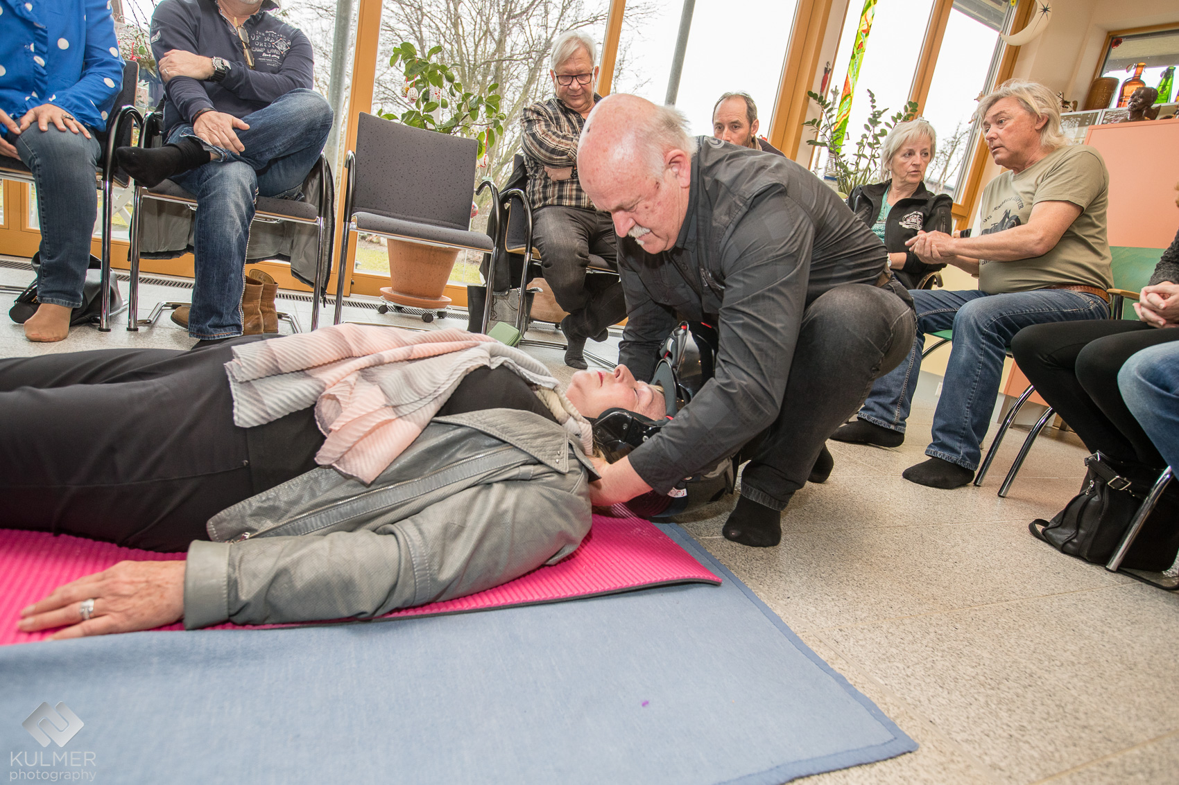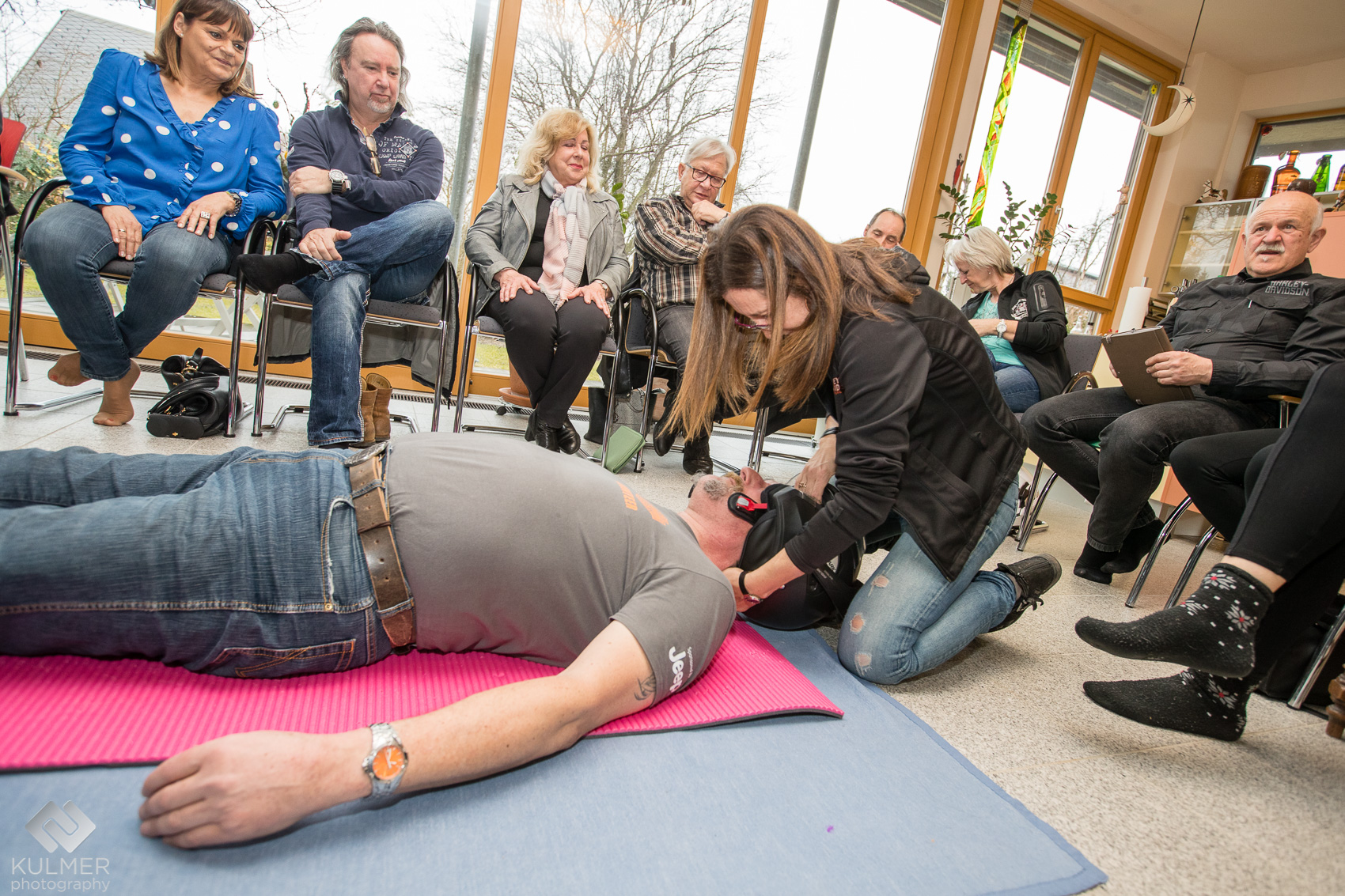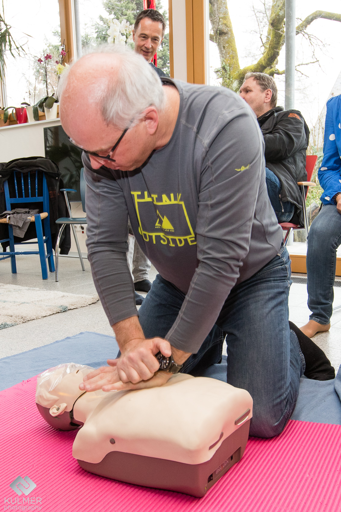 Viele der Chaptermitglieder fanden sich am 17.3.2018 bei Walter im Haus ein um am Erste-Hilfe-Kurs teilzunehmen. Wir wurden von einem Mitarbeiter des Samariterbund, Christoph Messner der tatkräftig von Heinrich Offner unterstützt wurde, in die erste Hilfe eingewiesen. Das Helm abnehmen, die Seitenlage, die Herzmassage bis hin zur Mund zu Mund Beatmung, den Verband und die Schiene anlegen, es war alles enthalten.