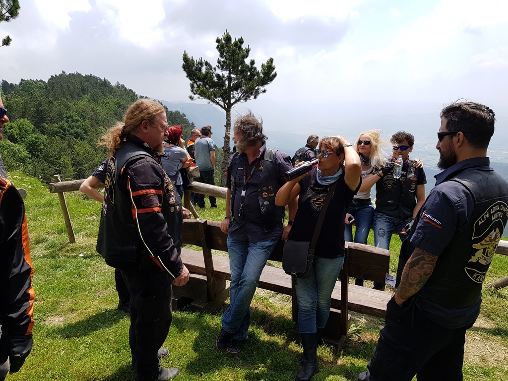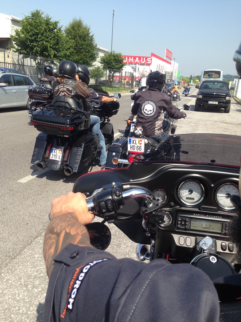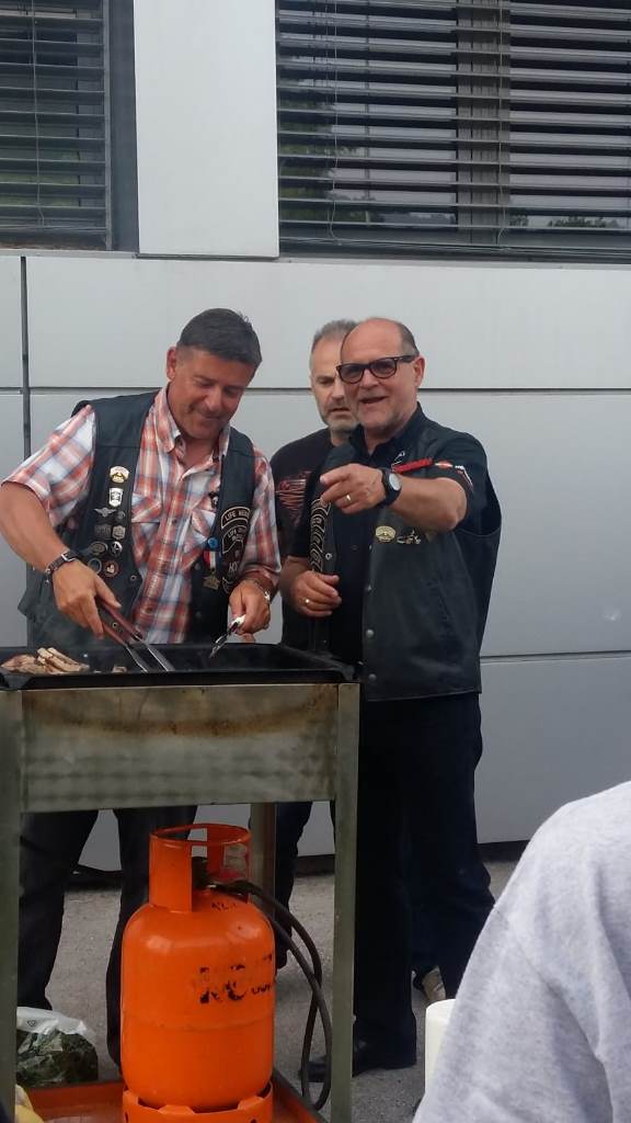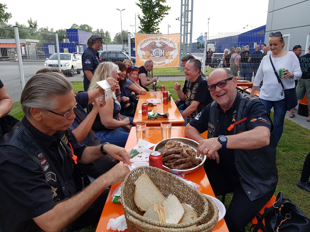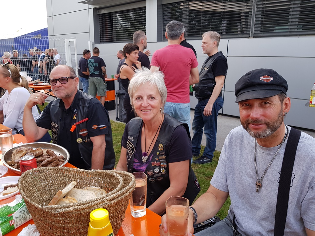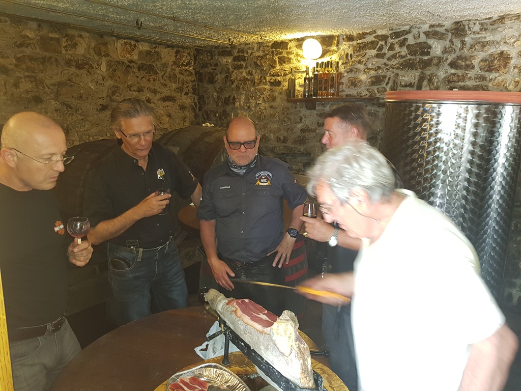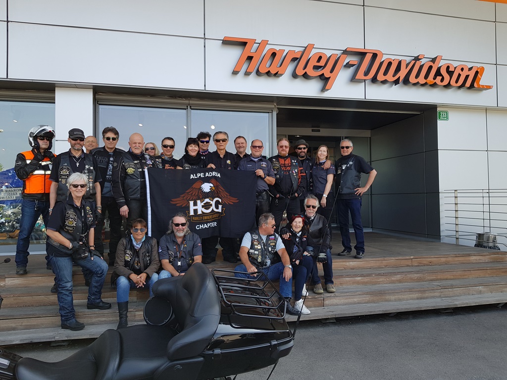 Die Anreise führte über den, offiziell gesperrten, Seebergsattel zur Mittagspause nach Dvorje. Danach ging es weiter nach Ljubljana ins Hotel zum Check-in. Am Abend besuchten wir das LIPA-Chapter beim örtlichen Harley-Dealer. Wir wurden freundlich empfangen und gleich zum Spanferkelschmaus, Kotelett und Cevapcici eingeladen. Grund dafür war auch der Geburtstag des Directors. Bei gutem Essen und ein paar Glas Wein oder Bier machten wir die Tour für den nächsten Tag aus.