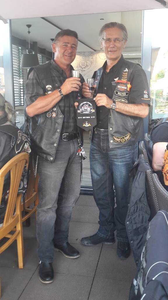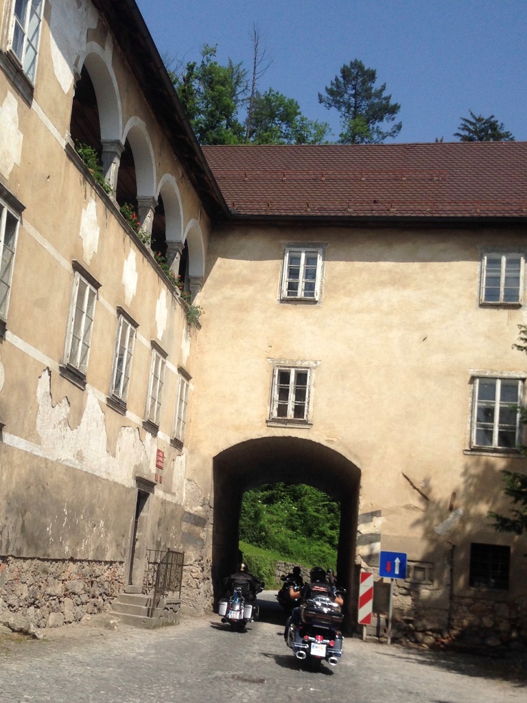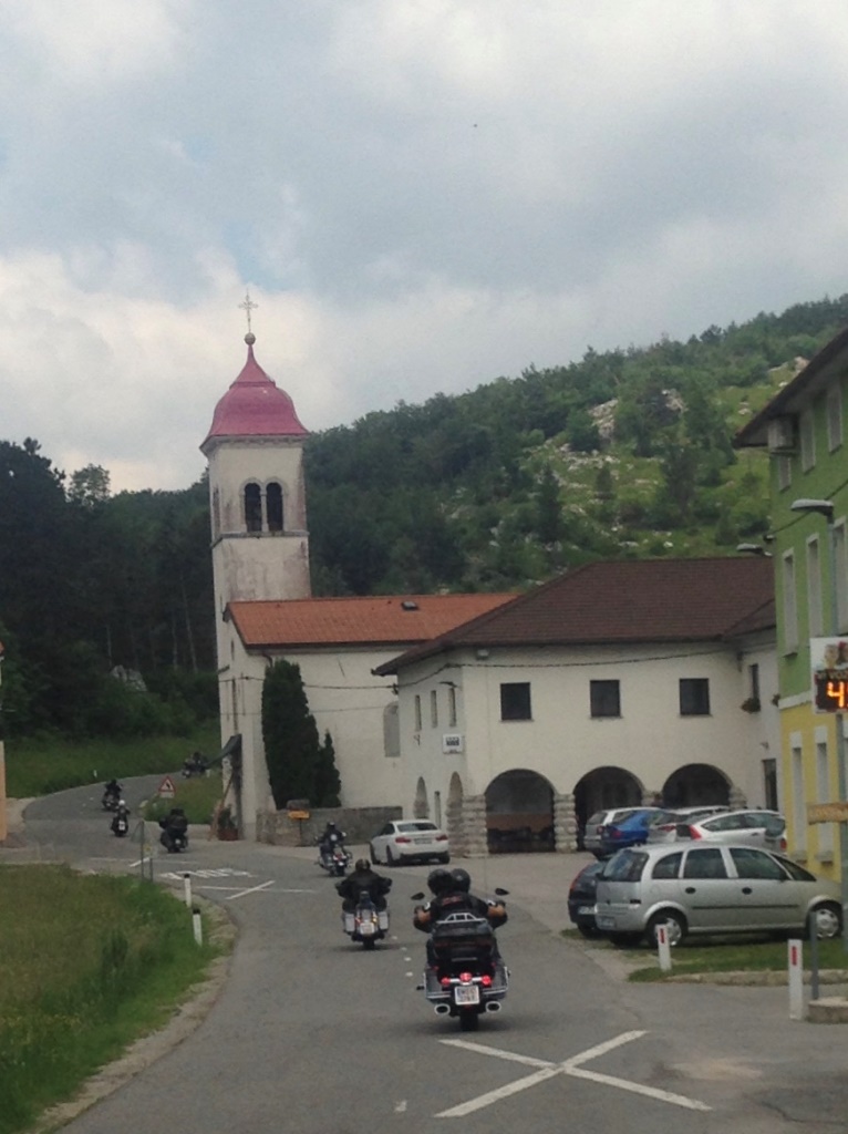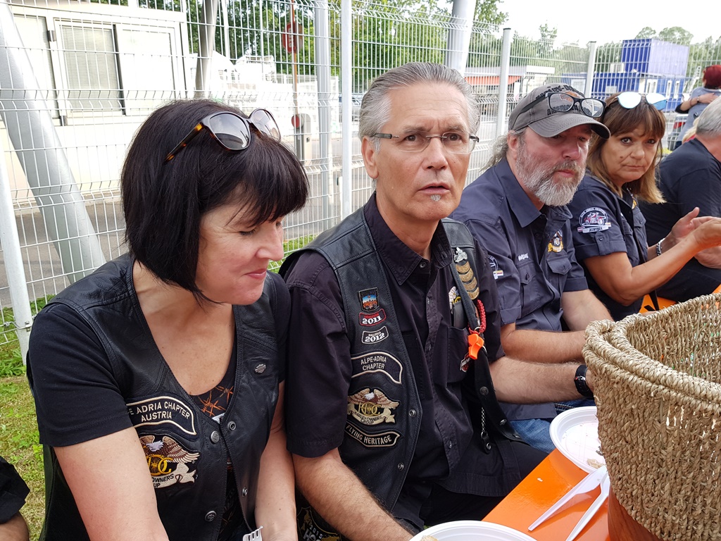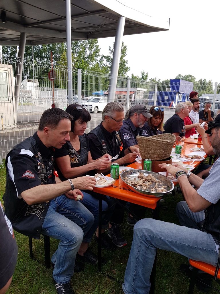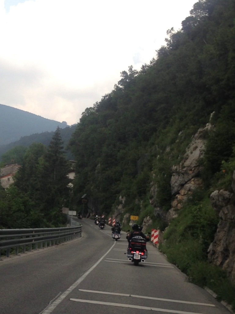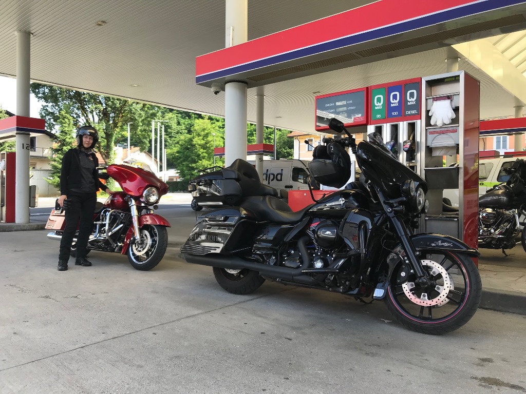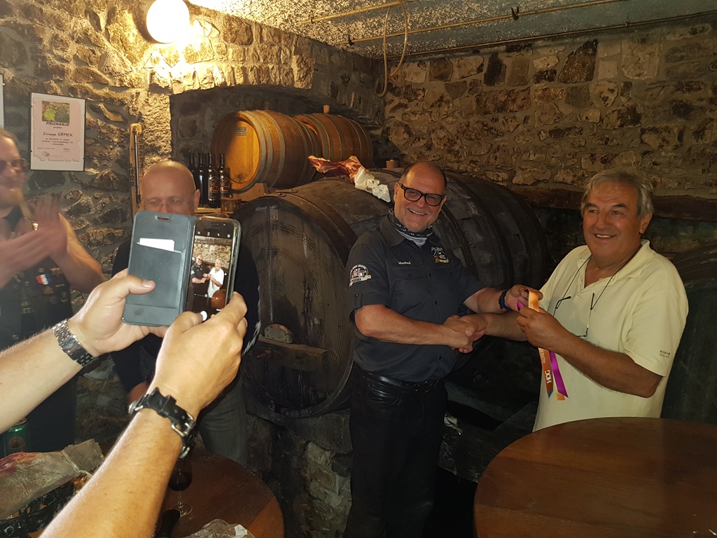 Die Anreise führte über den, offiziell gesperrten, Seebergsattel zur Mittagspause nach Dvorje. Danach ging es weiter nach Ljubljana ins Hotel zum Check-in. Am Abend besuchten wir das LIPA-Chapter beim örtlichen Harley-Dealer. Wir wurden freundlich empfangen und gleich zum Spanferkelschmaus, Kotelett und Cevapcici eingeladen. Grund dafür war auch der Geburtstag des Directors. Bei gutem Essen und ein paar Glas Wein oder Bier machten wir die Tour für den nächsten Tag aus.