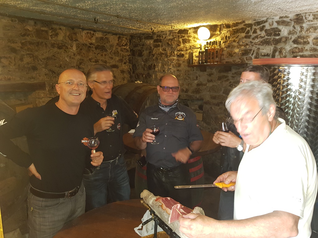Am Freitag trafen wir uns in der Früh wieder bei Harley Davidson Händler zum Start der Tour, die in die Brda führte. Wunderschöne Straßen, tolle Aussichten und nette Lokale machten die Ausfahrt zu einem Highlight. Bei einem guten Freund des Ass.Director Peter wurden wir mit einer guten Jause und den richtigen Getränken dazu verwöhnt. Nach einer kurzen Verkostung traten wir dann die Heimreise an. Ein Stopp bei der Einfahrt nach Ljubljana bildete den Abschluss der Ausfahrt. Den Abend verbrachten wir in der Stadt, wo wir nochmals mit Peter zusammentrafen.