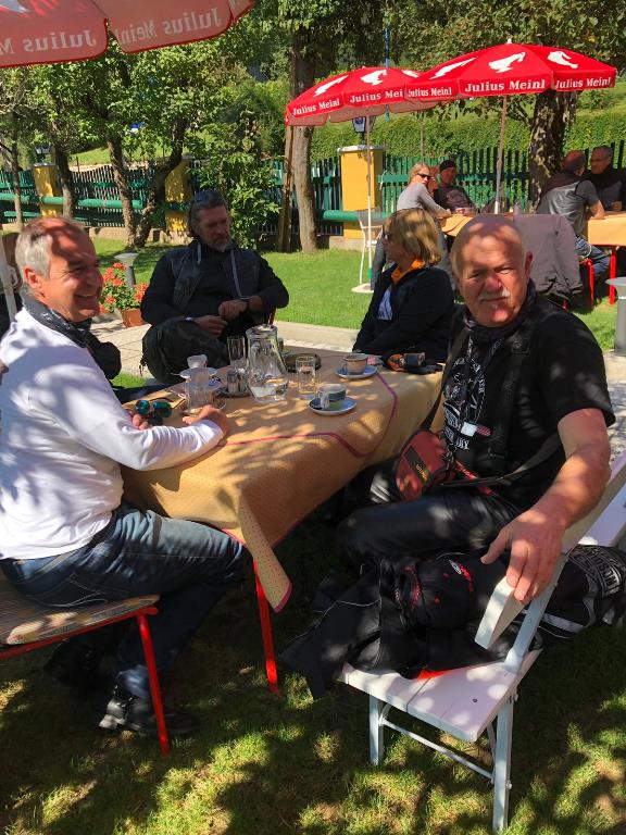 Kaffeestop gab es im Gasthof Kurath in St.Fillipen. In Murau wurden die Teilnehmer dann vom Bürgermeister empfangen. Eine Führung durch das Amtsgebäude rundete den Empfang ab. Das Mittagessen gab es im Restaurant Brauhaus. Danach wollte RC Manfred wie geplant die Tour über die Flattnitz zurück nach Faak führen. Doch eine schwere Gewitterfront zwang uns zur Routenänderung. So kamen wir bis nach Moosburg ohne einen Tropfen Regen. Dort führte RC Manfred dann die Tour wie geplant über das Sonnental, Velden, Rosegg zurück nach Faak zum Arneitz-Village. Dort wurde dann die erfolgreiche geführte Tour ergiebig gefeiert. Alle Teilnehmer waren zufrieden und lobten die perfekte Führung und die Arbeit der Safeties. Alle freuten sich auf die morgige Ausfahrt mit RC Patrick.