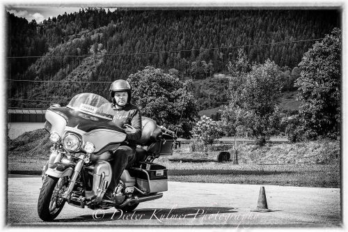 Robert Ertl trainierte die Officers. Geradeausfahrt, enge Kurven, unvorhersehbares Stehenbleiben, und danach eine Ausfahrt über die Berge die alles in sich hatte.