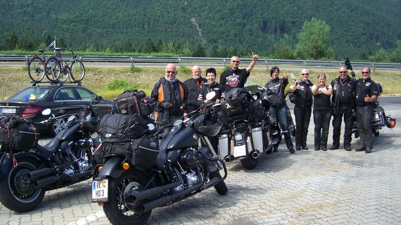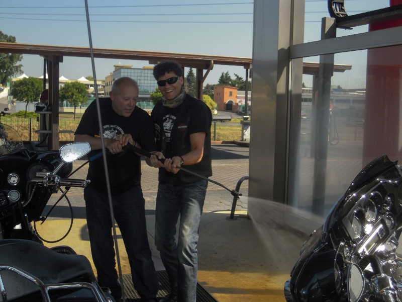 In Rom trafen wir dann die restlichen Teilnehmer die direkt nach Rom kamen. Nun waren wir eine ziemlich große Gruppe geworden. Wir besuchten das große Harley Fest zum 100. Geburtstag von Harley Davidson. Leider hatte unser Kollege Gerne kein Glück mit seinem Motorrad. Doch mit vereinten Kräften unterstützen wir ihn und auch die Werkstätten machten dann perfekte Arbeit, sodass er weiterfahren konnte.