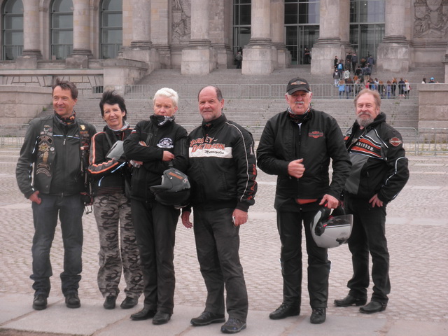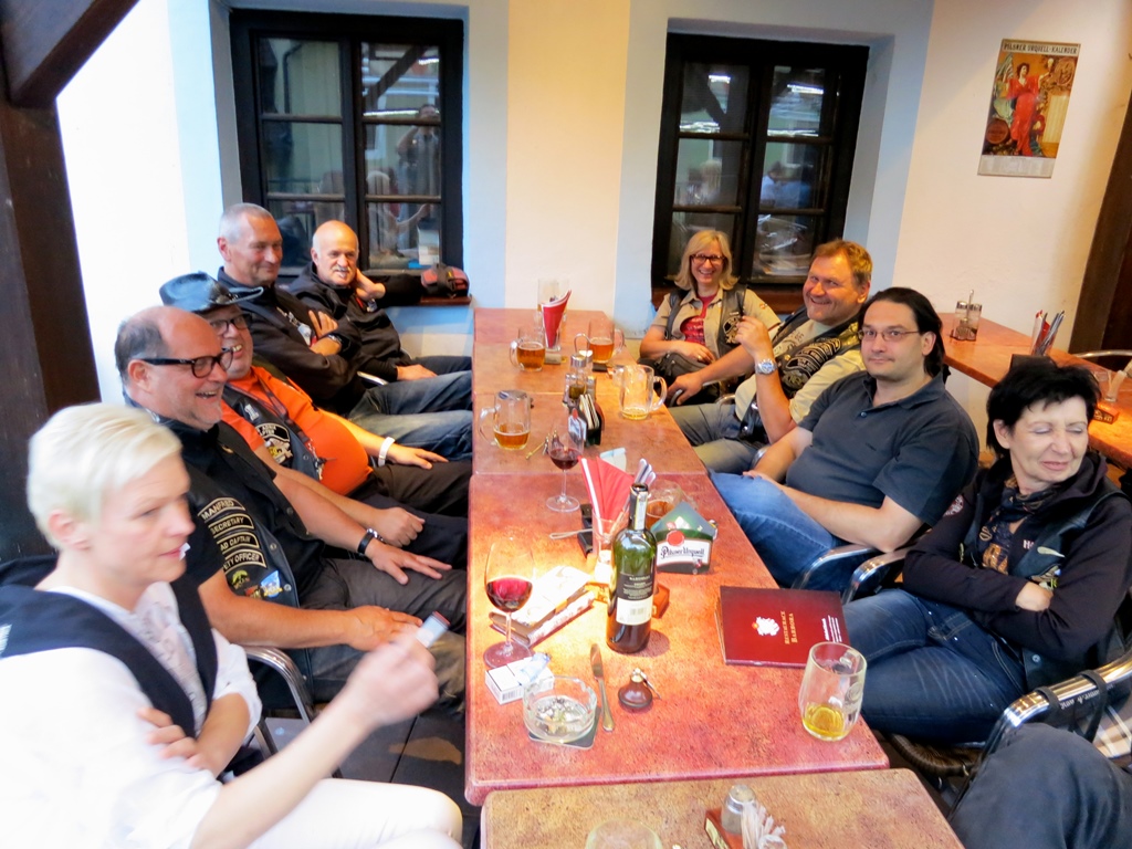 RC Manfred führte die Tour nach Berlin. Erster Stop war in Krumau, eine der schönsten Städte Tschechiens. Eine sehr schöne Altstadt mit vielen Sehenswürdigkeiten. Toll war, dass uns bis Krumau, die Chaptermitglieder Prokesch, Winkler Albin und Margit Waiker begleiteten. Nach einem Abendspaziergang und Besuch in einem tollen Beisl hatten alle Teilnehmer am nächsten Vormittag noch Zeit sich ein wenig die Stadt anzuschauen. Mittags ging es weiter nach Prag. Dort waren wir in einem Hotel mitten in der Stadt untergebracht. Somit konnten wir den Stadtkern zu Fuß erreichen und den ganzen Abend bis spät in die Nacht durch Prag schlendern. Der ganze nächste Tag stand zur Stadtbesichtigung zur Verfügung. Am nächsten Morgen ging es weiter nach Dresden und Leipzig, wo wir dann übernachteten. Aus Zeitmangel waren die Besichtigungen dieser Städte entsprechend kurz, aber effizient. Tag`s darauf ging es weiter nach Berlin, wo wir uns am Abend schon mit unserem Berliner Freund trafen. Wir besuchten gemeinsam eine Pizzeria. Dort verweilten wir sehr lange bei gutem Essen und „einigen“ Getränken. Am nächsten Tag machten wir dann eine Bootsfahrt auf der Sprey, wo wir sehr viel von Berlin sahen. Der nächste Tag führte uns dann teilweise über die Autobahn, da es tw. regnete und wir km machen mussten, sowie die wunderschöne Bundesstraße nach Weiden, eine verträumte, kleine Stadt in Bayern. Untergebracht waren wir wieder in einem sehr schönen Hotel, mitten im Stadtzentrum. Ein gemütlicher Abend folgte.