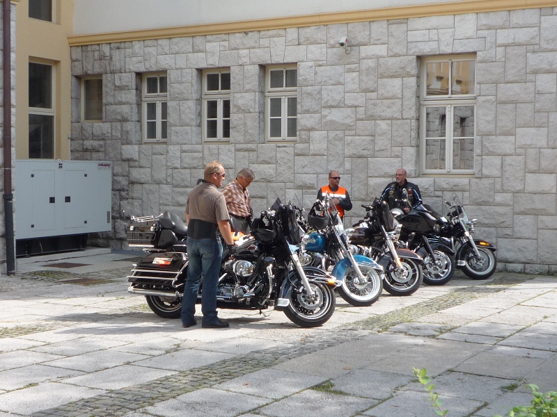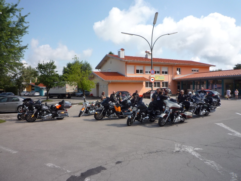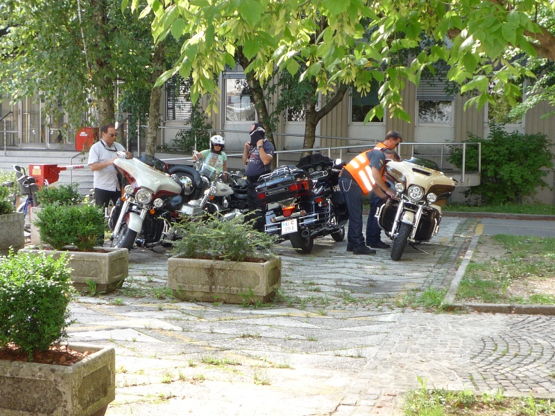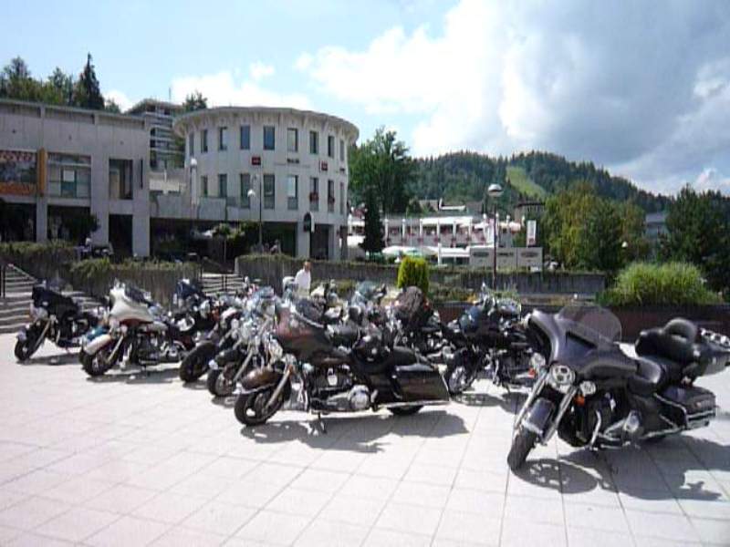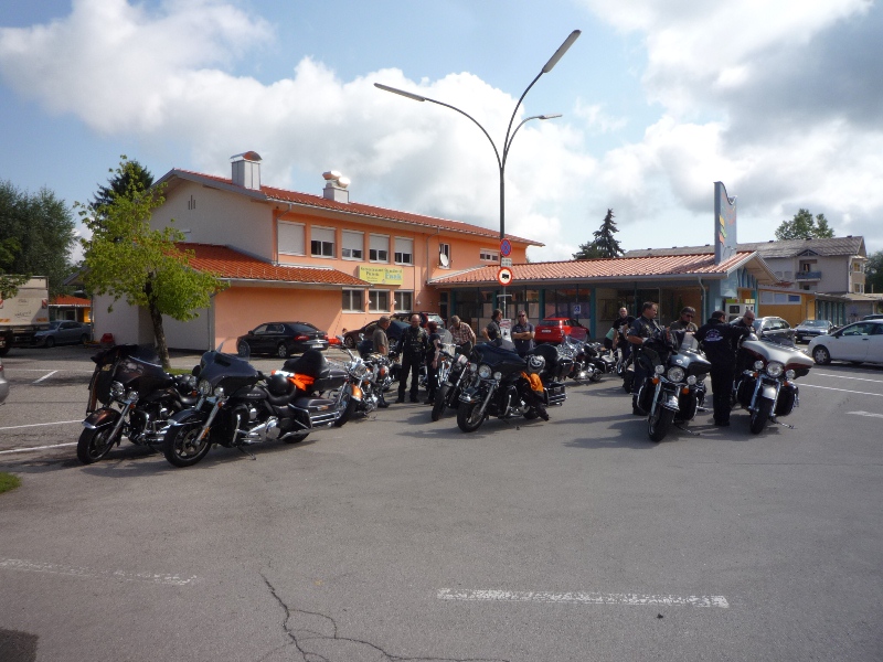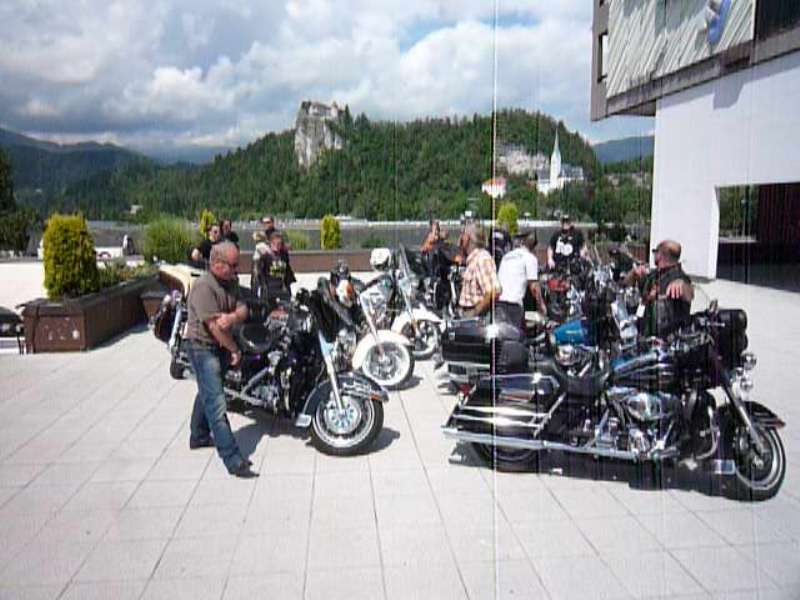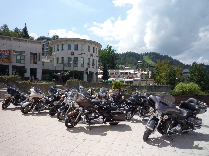 RC Dworak fuhr mit seinen Safeties seine EBW Tour "visiting friends" ab. So konnten wir die gefährlichen Kreuzungen ausfindig machen und die Safeties sich darauf einstellen, wie es bei der EBW funktionieren soll. Die Tour machte dann in Bled halt, wo wir die Amtsleiterin des Bürgermeisters von Bled trafen und den Ablauf bei der EBW besprechen. Danach ging es über die Landstrasse weiter nach Laibach. Dort parkten wir unsere Motorräder und spazierten durch die Fußgängerzone zum Lokal, wo wir dann auch mit der EBW-Tour zu Mittag essen werden.